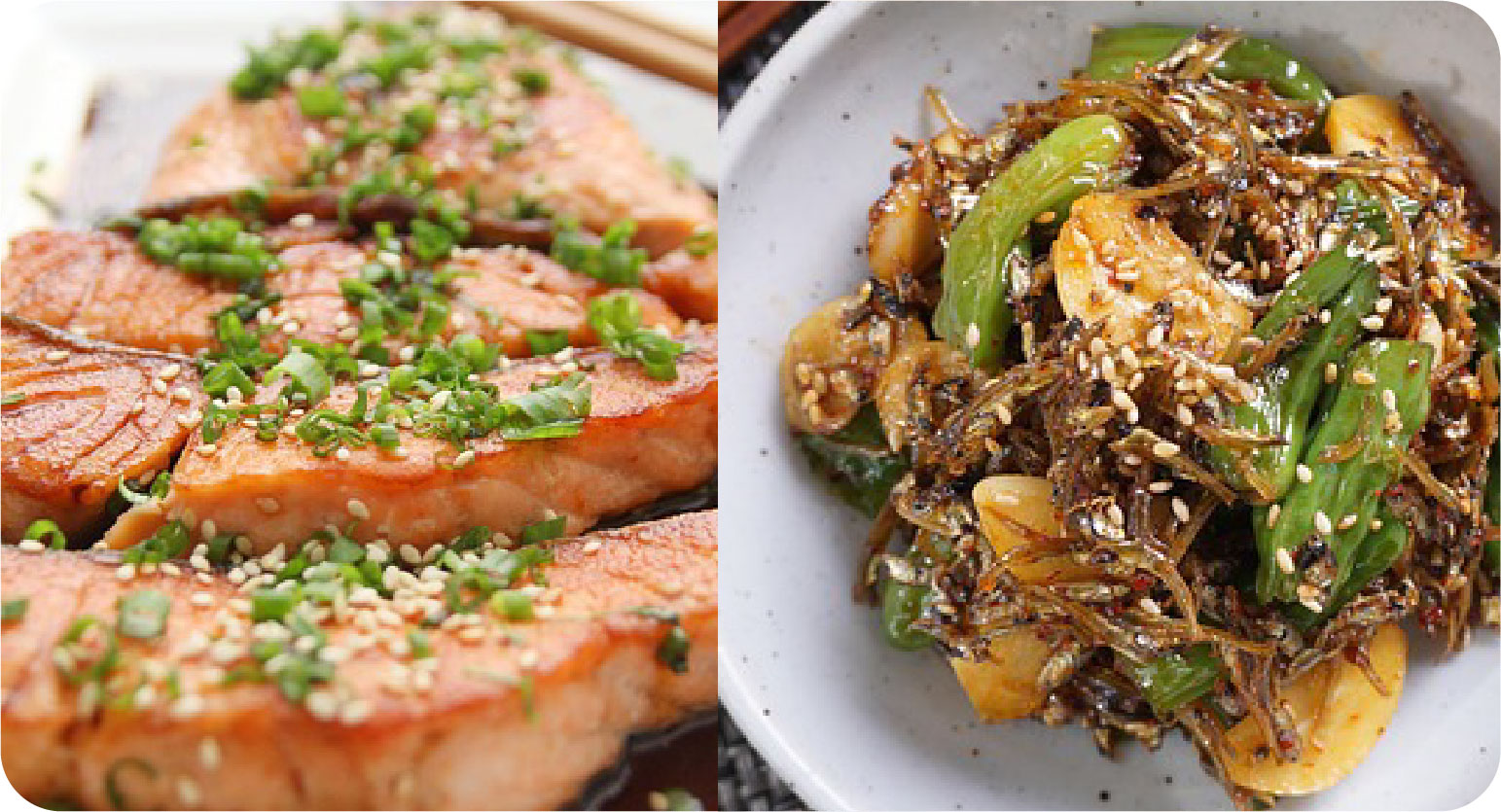 | 칼슘 | 뼈 밀도 유지 | 멸치, 우유, 두부 |
